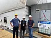 F.v. Odd Rune Bjørge (senterdirektør), Svein Magnar Bråten (byggeleder fra Olav Thon Gruppen) og driftssjef Arshell E. A. Pisani foran glasstaket som er i ferd med å skiftes ut på Bergen Storsenter.