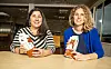 Forskerne Paula Varela og Martina Galler viser frem to av forpakningene som ble brukt i studien.