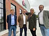 Senterleder Erik Skjellerud (fra venstre), eiendomssjef Roy Hansen i Scala, administrerende direktør Stine Trygg-Hauger i XXL og eiendomsdirektør Magnus Fredriksen i Scala Eiendom gleder seg til XXL åpner på Lillehammer neste høst.