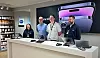 Fornøyde ansatte hos Eplehuset Stavanger, fra v.: Desireé Sinding, Jørn Guttelvik, Christian Nor Vallesverd og Tommy Sparøy. Sistnevnte har nylig begynt hos Flow Retail.Flow Retail