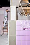 Siste innspurt med legging av fargerike fliser.Foto: Pernille Munster