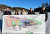 Ruller ut plansjen med det nye handelshuset: F. v. regiondirektør i Rema 1000 Alf Håkon Hervold, driver av dyrebutikken Buddy Sølvi Iren Gustavsen, representant for Grenstøl Handel AS Elisabeth Bakke, innehaver av JA Invest AS som har fått byggeoppdraget Jonny Antonsen og daglig leder i Grenstøl Handel AS Einar Sjøvaag.